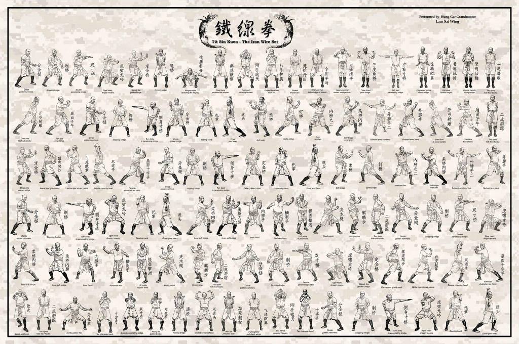 La forma del filo di ferro 鐵 線 拳 (鐵 Tit (Ferro) – 線 Sin (Filo) – 拳 Kyun (Pugno)).